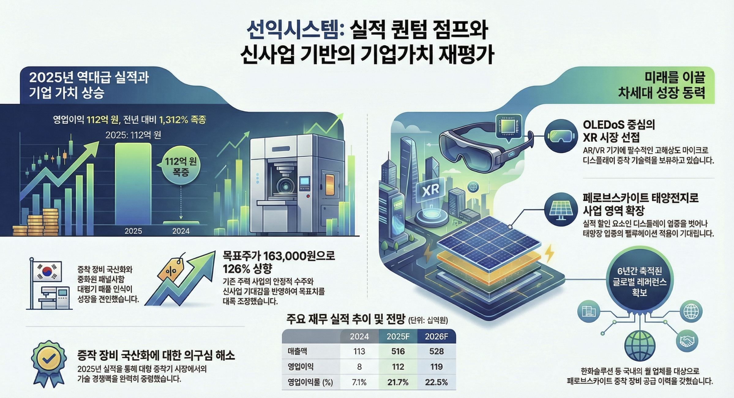 여기에 2026년 목표주가 163,000원 제시, 대형 증착기 수주 지속, XR 시장 확대 수혜 기대까지 더해지면서 멀티플 확장 가능성이 부각되고 있습니다.